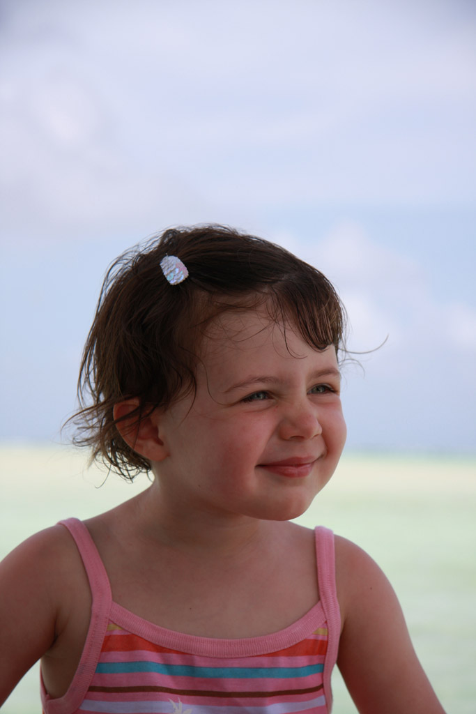 Vcelku roztomilá holčička patří k anglické rodině, se kterou jsem byl na One Foot Island. |