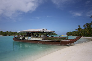 ...dalších 50,000 tisíc ostrovanů žije na Zélandu a 25,000 v Austrálii. Populace se stále zmenšuje, odcházejí hlavně mladí. S mezipřistáním na Rarotonga jsem přeletěl na třetí ostrov, Aitutaki. Ostrůvek s překrásnou lagunou plnou malých romantických 'motu' je prý nejmalebnější z jižní skupiny. |