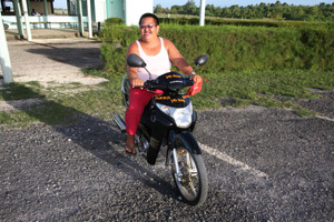Správcová Sally se o mě na Aitutaki pečlivě starala a na tomhle skútru mě nakonec odvezla i na letiště. |
